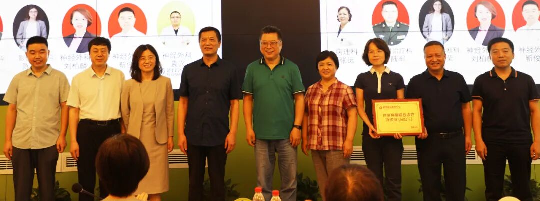 在与会人员见证下,高国栋教授,石梅教授,贺世明教授同甘肃省肿瘤医院,宁夏医科大学总院,西京医院,西安交大一附院等参会专家共同为西安国际医学中心医院神经肿瘤综合诊疗协作组(MDT)剪彩揭牌。