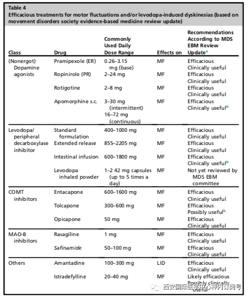 4.本综述根据MDS EBM综述更新(福克斯和同事2018年)的建议,概述了PD药物管理的现状。