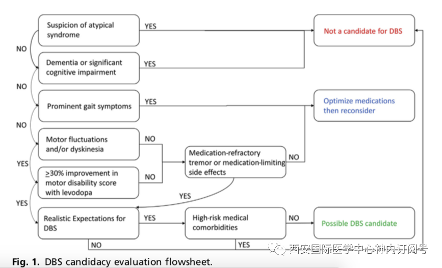在考虑PD的手术治疗时,明确诊断无疑很重要。 鉴于缺乏确定性的诊断生物标志物,PD的诊断是基于纯临床依据。 非典型帕金森综合征例如多系统萎缩和进行性核上性麻痹可以早期在症状和左旋多巴反应性方面模拟PD。 已报告的非典型帕金森病DBS病例的结果(无论是有意的还是由不正确的诊断引起的)均较差,多数情况下短暂改善后迅速下降。 除极少数情况外,手术干预的最短病程被认为是4年,以确保诊断的准确性。